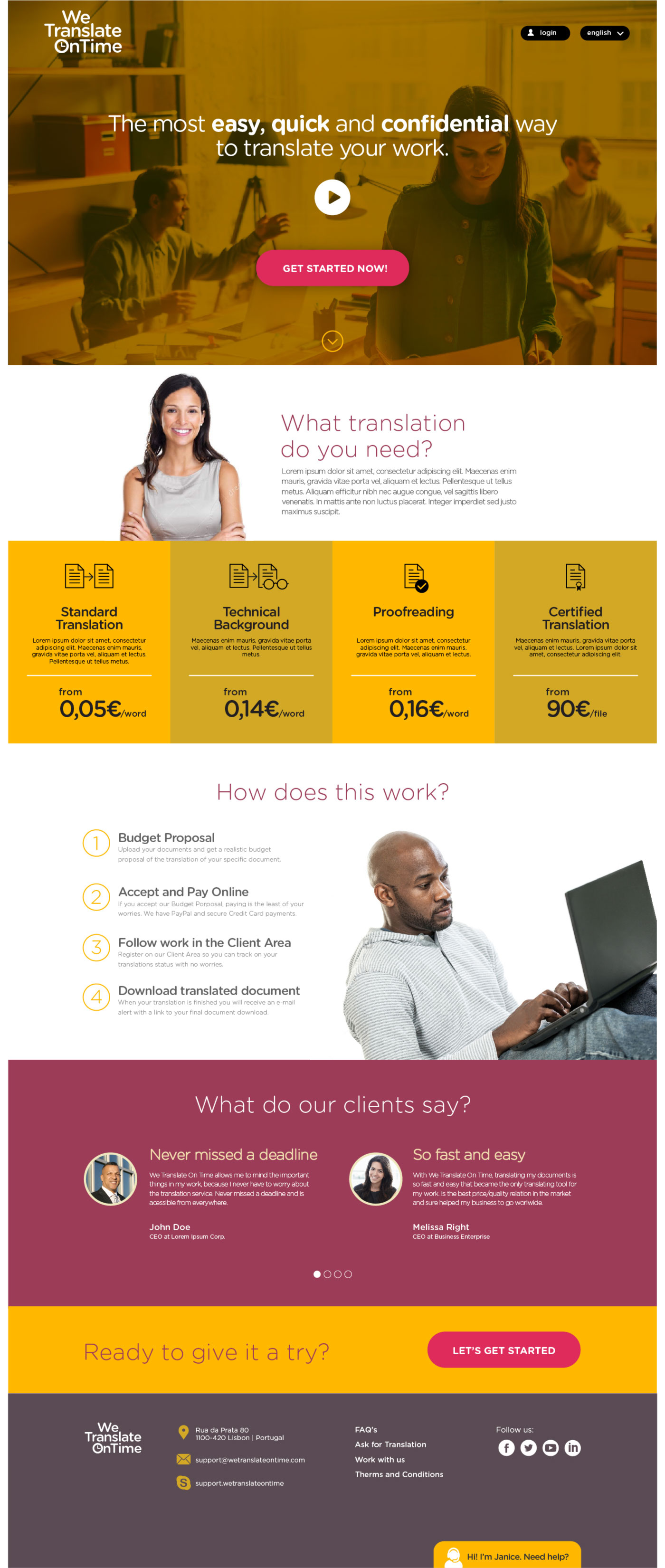 The aim of this proposal is t to redesign the Startup website "We Translate On Time", specialists in